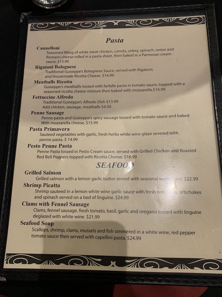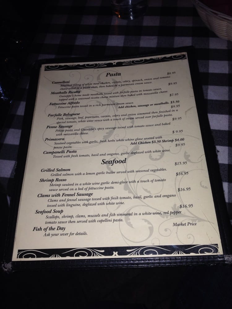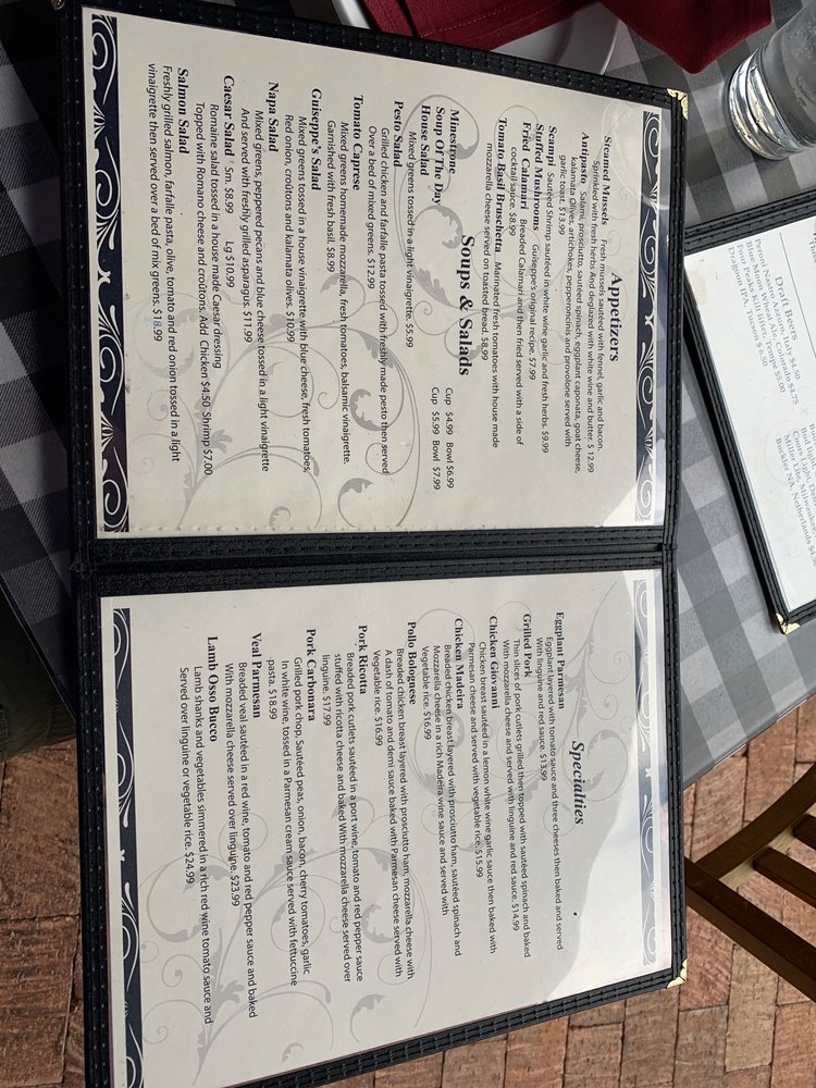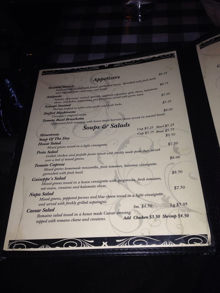 - Starters: Begin your meal with mouthwatering options like the tender Steamed Mussels or Guiseppe’s own Stuffed Mushrooms.