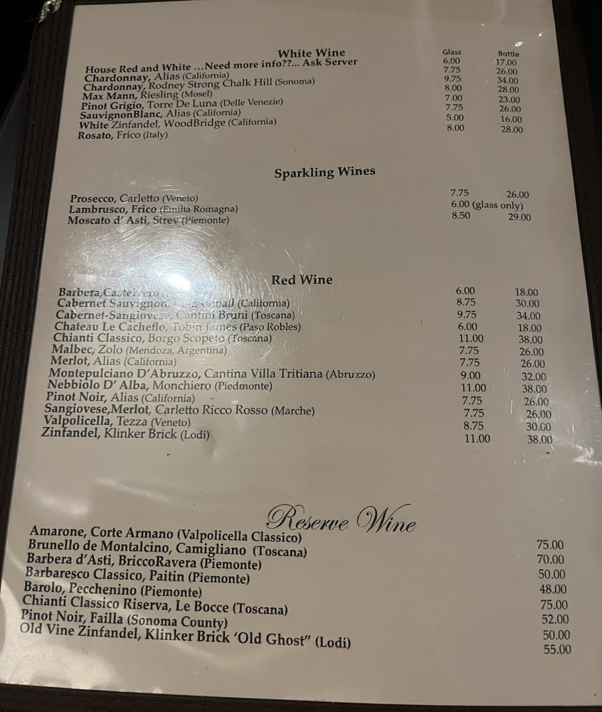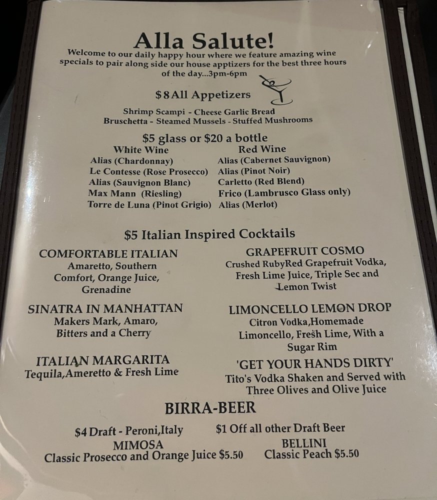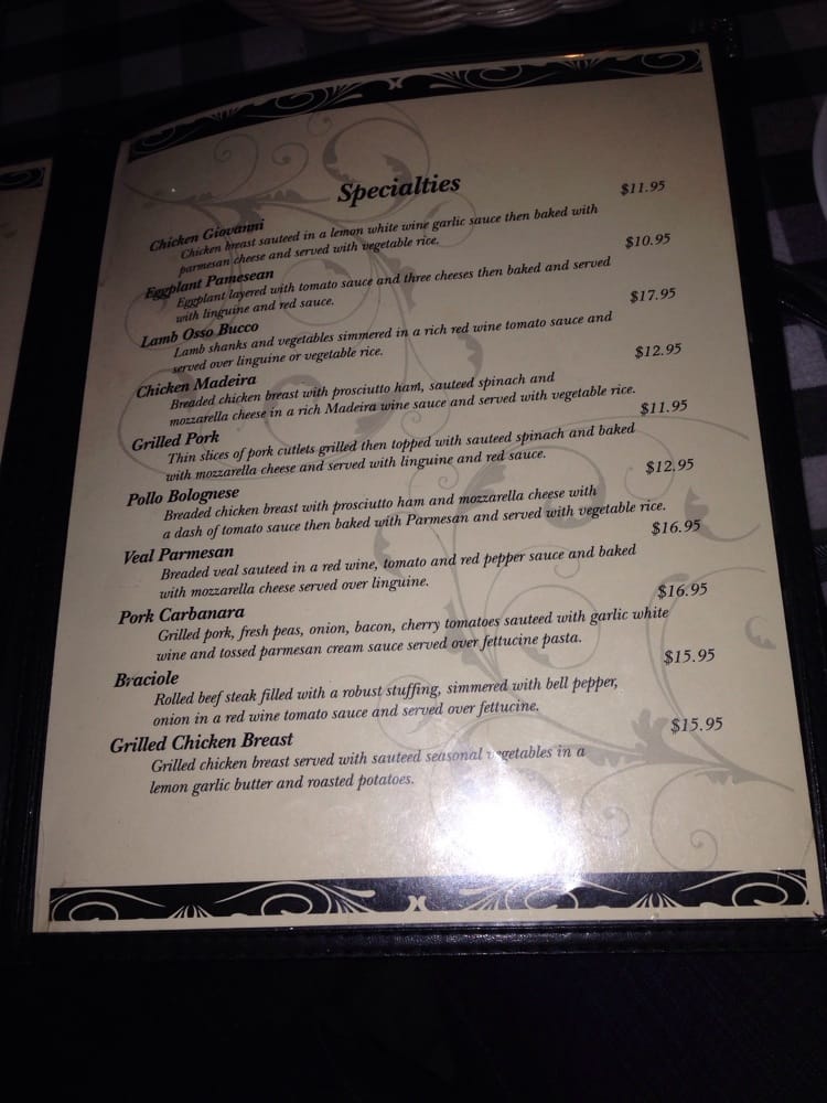- Specialties: Indulge in savory entrées such as Chicken Marsala or the irresistible Eggplant Parmesan.
